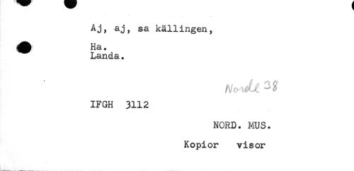 //// Ajy aj, sa källingen, //// ^^ Landa. //// IFGH 3112 //// NORD. MUS. //// Kopior visor ////