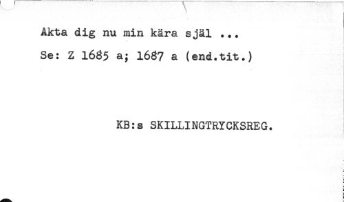 //// Åkta dig nu min kära själ ... //// j //// Se: Z 1685 a; I687 a (end.tit.) //// KB:s SKILLINGTRYCKSREG. //// f //// * ////