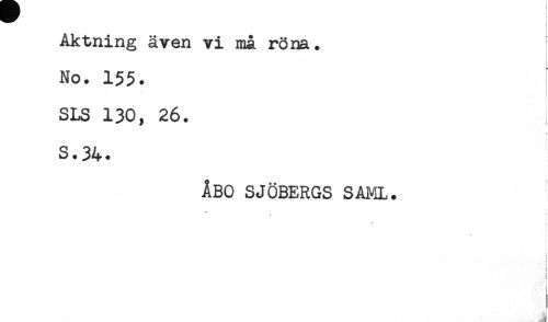 //// Aktning även vi må röna. //// No. 155. //// t //// t //// SLS 130, 26. //// f //// S.34. //// ÅBO SJÖBERGS SAML. //// <! , * //// t //// ! //// i //// ! //// < ////
