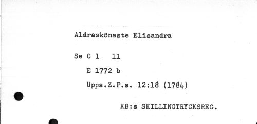 //// . . - -. . -... . . .,... .. . //// Aldraskönaste Elisandra //// Se C 1 11 //// E 1772 b //// Upps.Z.P.s. 12:18 (1784) //// KB:s SKILLINGTRYCKSREG. ////