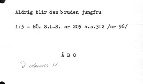 //// Aldrig blir den bruden jungfru //// 1:5 - BÖ. S.L.S. nr 205 a.s.312 /nr 96 //// /ÅBO ////