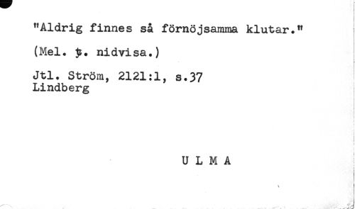 //// "Aldrig finnes så förnöjsamma klutar." //// i //// i //// i //// (Mel. nidvisa.) //// Jtl. Ström, 2121:1, s.37 //// Lindberg //// i //// < //// I //// t //// ] //// i //// ! //// ! //// i //// U L M A //// ) //// ! ////