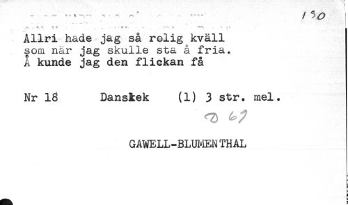 //// ir r. et *? , _ Br-y. . ' ^ y - *- <*. //// Allri hade jag så rolig kväll //// som når jag skulle sta å fria. //// A kunde jag den flickan få //// Nr 18 Danstek (1) 3 str. mel. //// GAWELL-BLMN THAL ////