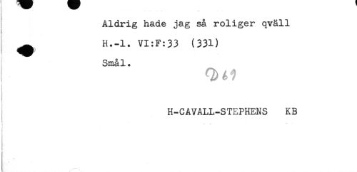 //// Aldrig hade jag så roliger qväll //// } //// ^ H.-l. VI:F:33 (331) //// Smål. //// ! //// H-CAVALL-STEPHENS KB //// i //// t //// .. -. - *- //// ( //// f ////