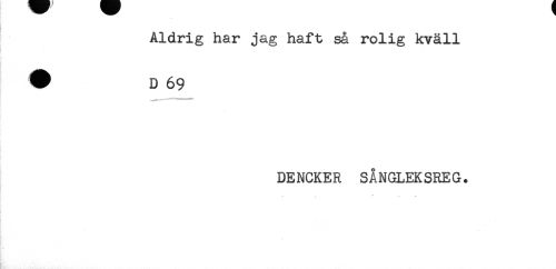 //// Aldrig har jag haft så rolig kväll //// DE NCKER SÅNGLEK SRE G. ////