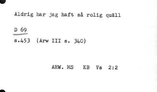 //// Aldrig har jag haft så rolig quäll //// D 69 //// s.453 (Arw III s. 340) //// ARW. MS KB Vs 2:2 ////
