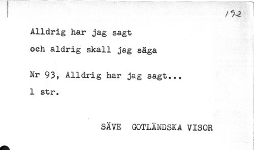 //// f //// /Alldrig har jag sagt //// och aldrig skall jag säga //// Nr 93, Alldrig har jag sagt... //// 1 str. //// i //// i //// i //// i //// SÄVE GOTLÄNDSKA VISOR //// t //// , ////