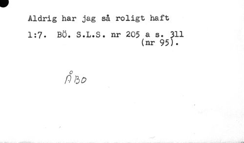 //// Aldrig har jag så roligt haft //// 1:7. BÖ. S.L.S. nr 205 a s. 311 //// (nr 95). ////