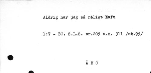 //// Aldrig har jag så r&ligt Eaft //// 1:7 - BÖ. S.L.S. nr.205 a.s. 311 /ni?.95 //// /