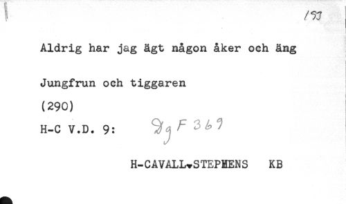 //// Åldrig har jag ägt någon åker och äng ; //// i //// t //// Jungfrun och tiggaren //// (290) //// H-C V.D. 9: ^ ^ ^ //// H-CAVALLvSTEPHENS KB ////