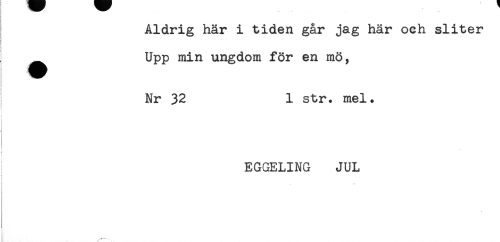 //// Aldrig hår i tiden går jag här och sliter //// < //// Upp min ungdom för en mö, //// Nr 32 1 str. mel. //// EGGELING JUL ////