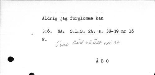 //// ^ .."- : , ' ; .' ' ' //// K* //// N^* - //// Åldrig jag förglömma kan //// 3:6. NA. S.L.S. 24. s. 38-39 nr 16 ////
