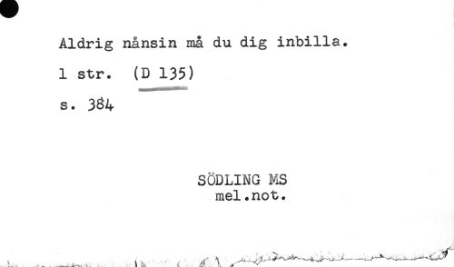 //// Aldrig nånsin må du dig inbilla. //// 1 str. (D 135) //// s. 3^4 //// SÖDLING MS //// mel.not. ////