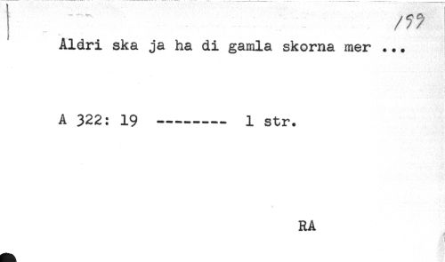 //// [ " -. . //// Aldri ska ja ha di gamla skorna mer ... //// A 322: 19 --- 1 str. //// RA ////