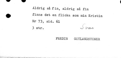 //// Aldrig så fin, aldrig så fin //// ^ finns det en flicka som min Kristin //// Nr 73, sid. 61 //// 3 str. //// FREDIN GOTLANDSTONER ////