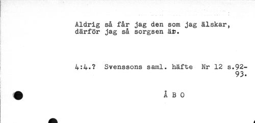 //// - - ....- .. — - . . ' .. .. .- - ^ //// Aldrig så får jag den som jag älskar, //// därför jag så sorgsen äi?. //// - //// ) //// { //// i //// : //// 4:4.? Svenssons saml. häfte Nr 12 s.92- //// 93. //// 3 //// i * //// ? //// 9* //// } //// i ////