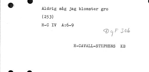 //// Aldrig såg jag blomster gro //// (253) //// t //// H-C IV A:6-9 //// H-CAVALL-STEPHENS KB ////