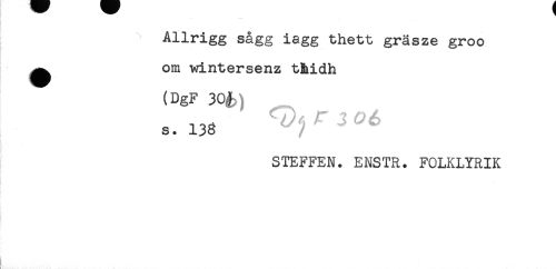 //// Allrigg sågg iagg thett gräsze groo //// ^ om wintersenz t&idh //// (DgF 30%;- //// s. 138 //// STEFFEN. ENSTR. FOLKLYRIK //// t ////