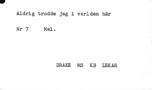 //// Aldrig trodde jag i verIden här //// Nr 7 Mel. //// ] //// DRAKE MS KB LEKAR ////