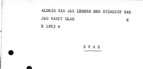 //// ALDRIG VAR JAG LESSEN MEN STÄNDIGT HAR //// ! JAG VARIT GLAD g //// < //// 1 //// E 1863 v //// I //// S V A S ////
