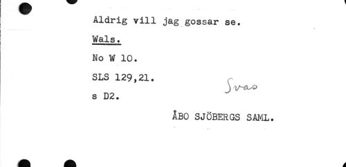 //// Aldrig vill jag gossar se. //// * //// Wals. //// No W 10. //// SLS 129,21. //// j //// s D2. //// ÅBO SJÖBERGS SAML. //// * //// * ////