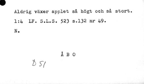 //// Aldrig växer äpplet så högt och så stort. //// 1:4 LF. S.L.S. 523 s.132 nr 49. //// N. //// ÅBO //// & ,r //// /