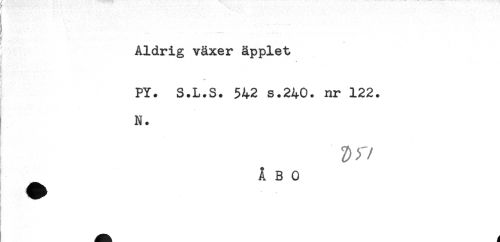 //// Åldrig växer äpplet //// g //// t //// C- //// P ' * ** //// PY. S.L.S. 542 s.240. nr 122. //// N. //// Zb.- //// ÅBO ////