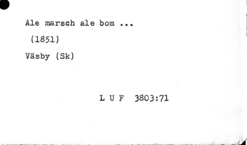 //// 1 //// ( //// Ale marsch ale bom ... ! //// j //// (1851) //// Väsby (Sk) //// L U F 3803:71 ////