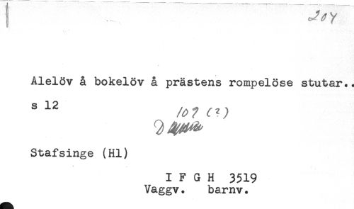 //// Alelöv å bokelöv å prästens rompelöse stutar.. //// Stafsinge (Hl) //// l //// I F G H 3519 //// Vaggv. barnv. ////