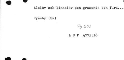 //// Alelöv och linnelöv och graneris och fura... //// ! //// t //// Ryssby (Sm) //// L U F 4775:16 ////
