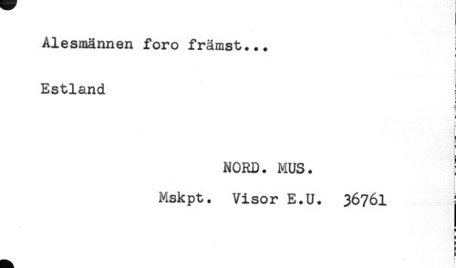//// Alesmännen foro främst... //// < //// Estland //// t //// < //// i* //// * //// NORD. MUS. //// Mskpt. Visor E.U. 36761 //// H ////