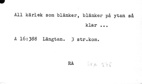 //// All kårlek som blänker, blänker på ytan så //// klar ... //// Å 16:336 Längtan. 3 str.kom. //// RA Jv^ ////