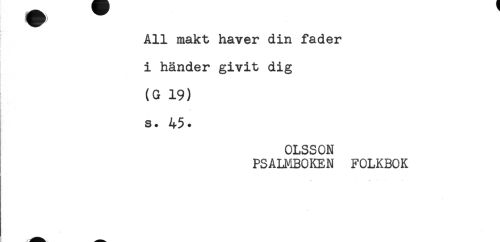 //// All makt haver din fader //// i händer givit dig //// (G 19) //// s. 45* //// OLSSON //// PSALMBOKEN FOLKBOK ////