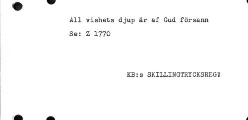 //// All vishets djup är af Gud försann //// Se: Z 1770 //// KB: s SKILLINGTRYCKSREG!? //// i ////