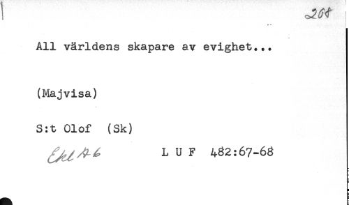 //// f* I //// All världens skapare av evighet... //// (Majvisa) //// S:t Olof (Sk) //// L U F 4^2:67-66 ////