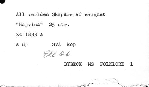 //// All verlden Skapare af evighet //// "Majvisa" 25 str. //// Zz 1333 a //// s 35 SVA kop //// DYBECK MS FOLKLORE 1 //// , , ... . ^ ////
