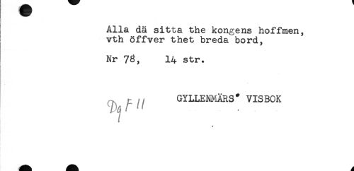 //// Alla dä sitta the kongens hoffmen, //// vth öffver thet breda bord, //// Nr 73, 14 str. //// ^ r // GYLLENMÄRS* VISBOK //// * ////
