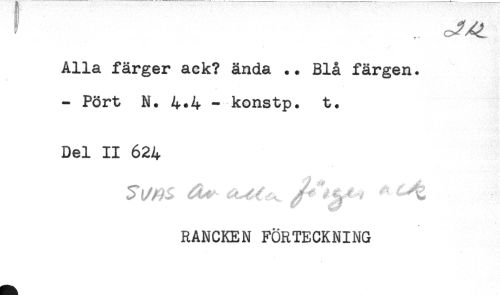 //// Alla färger ack? ända .. Blå färgen. //// - Pört N. 4.4 - konstp. t. //// Del II 624 //// RANCKEN FÖRTECKNING ////