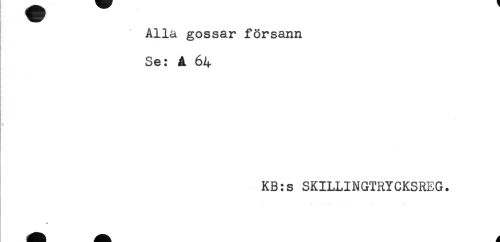 //// Alla gossar försann //// Se: A 64 //// KB:s SKILLINGTRYCKSREG. ////