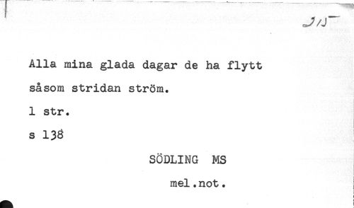 //// Alla mina glada dagar de ha flytt //// såsom stridan ström. //// ) //// 1 str. //// s 133 //// SÖDLING MS //// mel. not. //// i //// F //// j ////