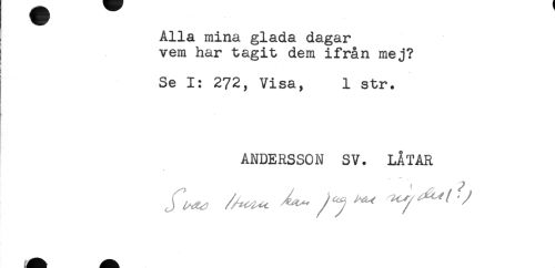 //// Alla mina glada dagar //// vem har tagit dem ifrån mej? //// Se 1: 272, Visa, 1 str. //// ANDERSSON SV. LÅTAR ////