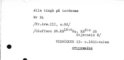 //// Alle tingh på iordenae //// Nr 24 //// /Fr.Arw.III, s.92 //// //Oluffson 26.KB^-^'°64. 26 //// ^ Stjerneld 8 //// /j VISBÖCKER 15- o.l600-talen //// ) - ^^ //// j ^ GYLLENMÄRS ////