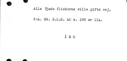 //// Alla Tjudo flickorna ville gifta sej, //// 2:4. SA. S.L.S. 40 s. 199 nr 114. //// ÅBO ////