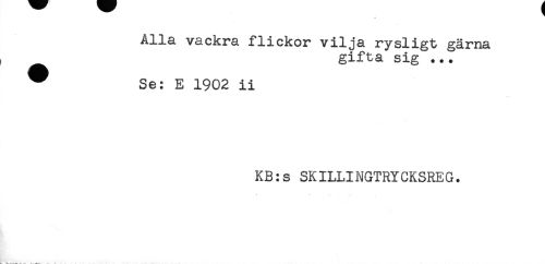 //// Alla vackra flickor vilja rysligt gärna //// , gifta sig ... //// ^ Se: E 1902 ii //// KB:s SKILLINGTRYCKSREG. //// - \ ^. . — .. ////