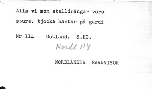 //// Alla vi som stalldrängar voro //// sture. tjocka hästar på gardi //// Nr 114 Gotland. S.HC. //// NORDLANDER BARNVISOR ////