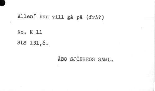 //// Allén* han vill gå på (frå?) //// \ //// No. K 11 //// SLS 131,6. //// ÅBO SJÖBERGS SAML. ////
