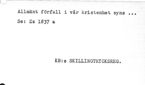 //// Allmänt förfall i vår kristenhet syns ... //// Se: Zz I837 a //// KB:s SKILLINGTRYCKSREG. ////