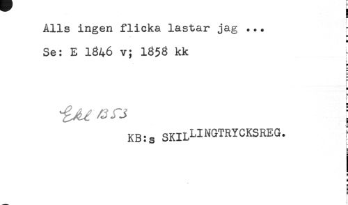 //// Alls ingen flicka lastar jag ... //// H //// H //// Se: E 1846 v; 1856 kk //// —-—j //// r //// KB:s SKILLINGTRYCKSREG. ^ //// t— //// t //// g //// § //// g //// E //// B //// E //// ! //// _ y ////