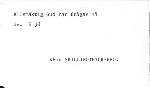 //// Allsmäktig Gud här frågas må //// Se: H 33 //// * //// ! //// t //// < //// L //// KB:s SKILLINGTRYCKSREG. //// < //// _ : ////