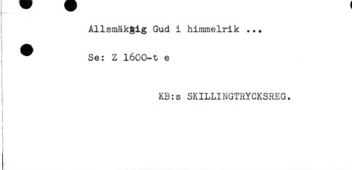 //// Allsmäkgig Gud i himmelrik ... //// ^ Se: Z 1600-t e //// KB:s SKILLINGTRYCKSREG. //// ;. .. - ////